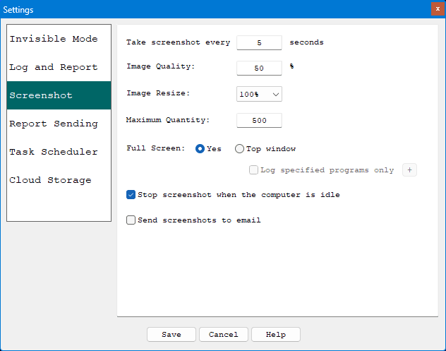 Stop screenshot when the computer is idle: Enable this option so that the software will NOT take exactly the same screenshots repeatedly when there is no one using the computer. (recommended)